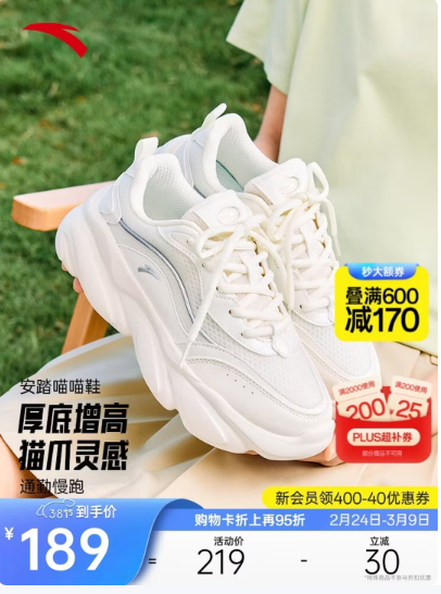 安踏喵喵鞋丨关晓彤同款老爹鞋女鞋革面厚底增高运动鞋女神节礼物