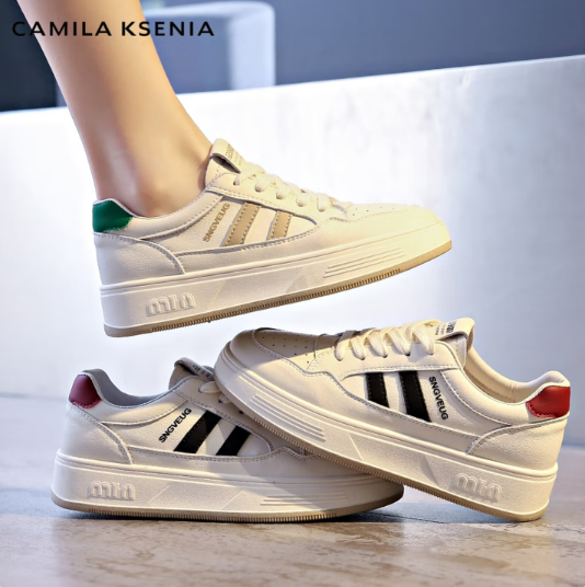 CAMILA KSENIA爆款小白鞋女士2026年新款春季厚底时尚百搭休闲板鞋平底运动鞋子 黑色 38